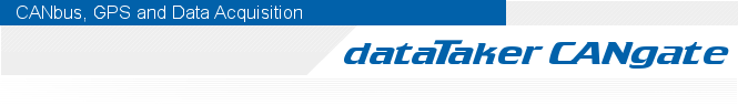 The dataTaker CANGate CAN to ASCII gateway filters and converts CAN (Controller Area Network) and GPS (Global Positioning System) data to serial ASCII data. It has been designed to capture the real-time data available on CAN and GPS networks and pass that information on to a dataTaker datalogger.