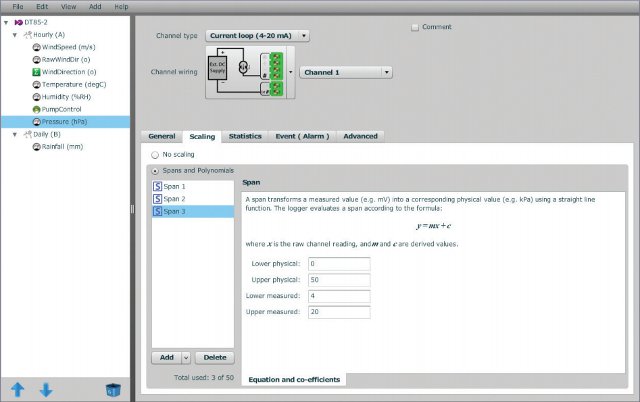 The configuration editor allows you to view, edit and save logger configurations in an easy-to-use Windows Explorer style user interface. The configuration tree view allows definition of measurement schedules and measurements.